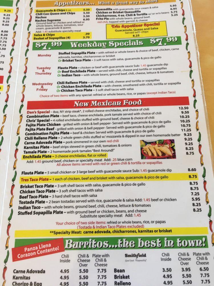 The breakfast menu features tempting options like the Chiquito Cheese Omelet and French Toast, perfect for any early riser. For more savory fare, the stuffed sopapilla and a selection of hearty specials ensure there's something for everyone. With many vegetarian choices and a welcoming atmosphere, it’s ideal for families and groups alike.
